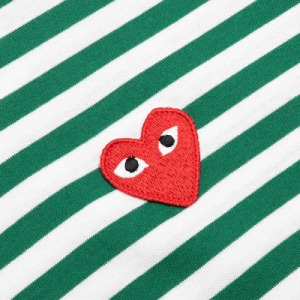 Elevate your everyday style with the timeless and effortlessly fashionable CDG PLAY Big Red Heart Striped L/S T-Shirt (White/Green). This