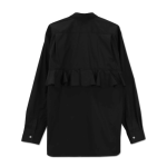 Step into the world of avant-garde fashion with the CDG Black Frill Insert Shirt. Standout piece that fuses structure with softness. Designed by Comme des Garçons. This shirt is a perfect example of the brand’s commitment to innovative tailoring and unexpected detailing.
