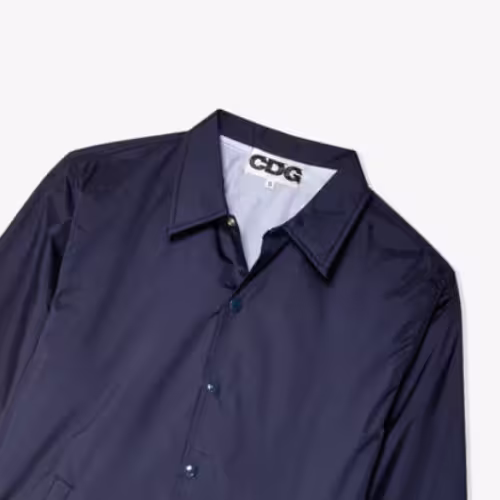 If you are looking to upgrade your wardrobe with a piece that offers both practicality and a bold sense of identity, the CDG Dot Coach Jacket Navy is the ideal choice. It’s lightweight enough for transitional seasons while still delivering a polished, fashion-forward look.