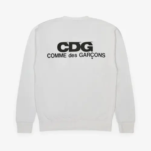 Crafted from high-quality cotton fleece, the CDG Logo Crew Neck Sweatshirt White offers a soft brushed interior that provides warmth without excessive bulk. The structured crew neckline maintains its shape through repeated wear. Ribbed cuffs and hem ensure a secure fit while preserving the garment’s streamlined profile.