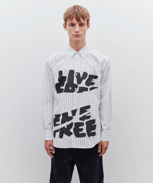 Upgrade your wardrobe with the stylish and contemporary CDG Men’s Live Free Curved Printed Shirt, designed for men who value comfort, individuality, and premium quality. This shirt perfectly blends Comme des Garçons’ signature avant-garde aesthetic with everyday wearability, making it a standout piece for casual and semi-formal occasions. Crafted with precision, the shirt features a curved print that adds a unique visual appeal, symbolizing freedom and modern streetwear vibes.