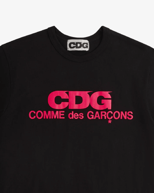 For those who appreciate unique fashion statements, the CDG Pink Logo T-Shirt Black delivers the right balance of subtlety and boldness. It embodies the spirit of individuality and creativity, hallmarks of the Comme des Garçons brand. A versatile piece that transitions seamlessly from casual streetwear to chic evening looks. This T-shirt deserves a spot in your wardrobe.