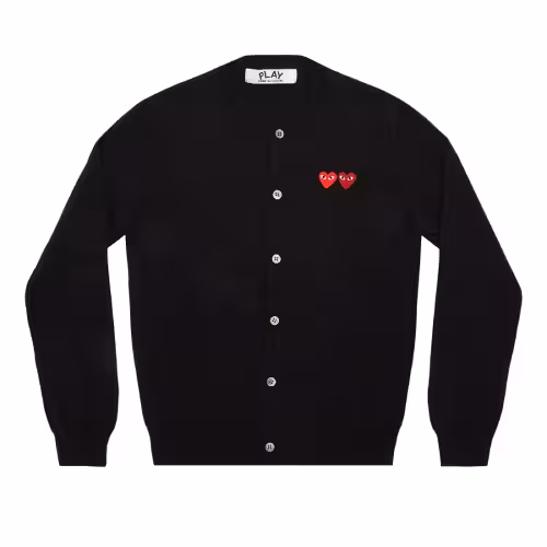 If you’re searching for a versatile piece that embodies modern Japanese fashion aesthetics with global appeal, the CDG PLAY Round Neck Cardigan with Double Emblems Black is a must-have addition to your collection.