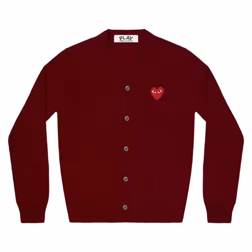 CDG PLAY V-Neck Cardigan Red Emblem Burgundy