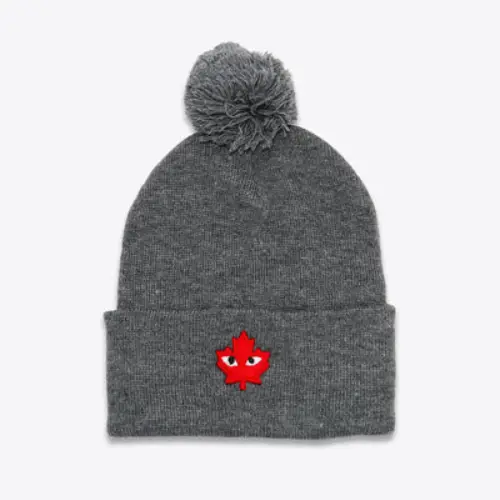 Stylish grey beanie with playful pom-pom and Canadian CDG logo