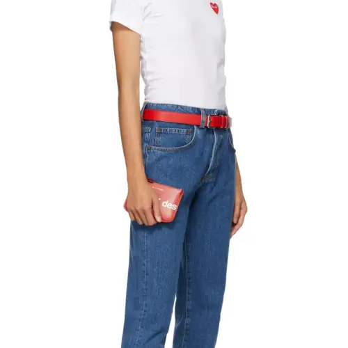 This pouch complements any modern outfit — from casual streetwear to elegant evening wear. The smooth zip closure keeps your essentials secure, and the slim design slides easily into handbags or can be carried as a sleek clutch. With its flawless stitching, gold-tone hardware, and durable interior lining, the COMME des GARÇONS Red Huge Logo Pouch reflects the brand’s signature craftsmanship and commitment to detail.
