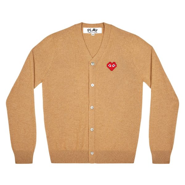 Refresh your style with the PLAY Men’s Cardigan Invader Emblem (Beige) a statement piece that blends refined comfort with standout design. Crafted by Comme des Garçons PLAY, this men’s cardigan features a neutral beige base that complements any look, while the eye-catching Invader emblem on the chest adds bold personality. Whether layered over a casual tee or styled with tailored pieces, this cardigan offers both comfort and contemporary flair.